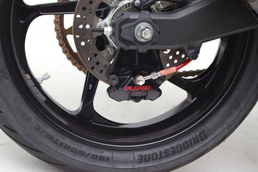 The caliper bracket offers some advantages with relocating the rear caliper to the bottom of the swingarm. With its lower centre of gravity, and easier wheel changing this is the default position for WSBK and MotoGP bikes.